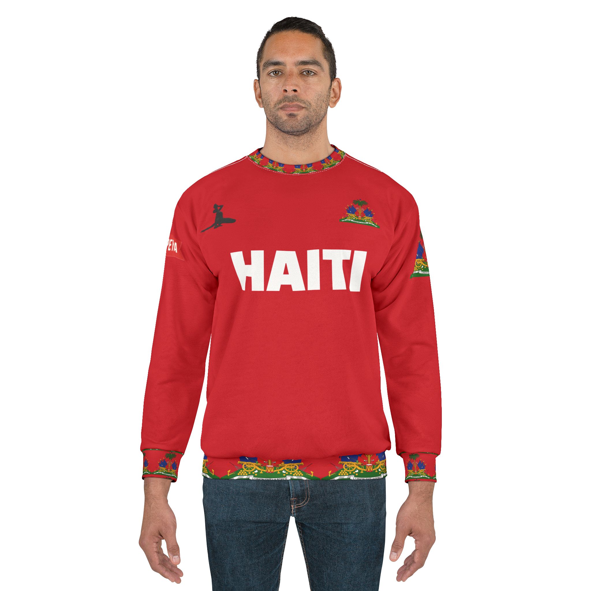 This vibrant, all-over printed sweatshirt channels pride and passion with bold red and vivid accent trim. Lightweight but substantial, it wears like a favorite layer—soft against the skin and quick to dry. The crew neck and classic fit keep the silhouette familiar, while ribbed cuffs, collar, and hem hold shape through everyday wear. That full-decoration print lets colors pop edge-to-edge, turning a simple layer into a statement piece that reads loud and proud. Wear it to march, to watch the match with friends, or to carry a homeland’s colors into the streets — it’s designed to feel like community and confidence rolled into one cozy sweatshirt.
